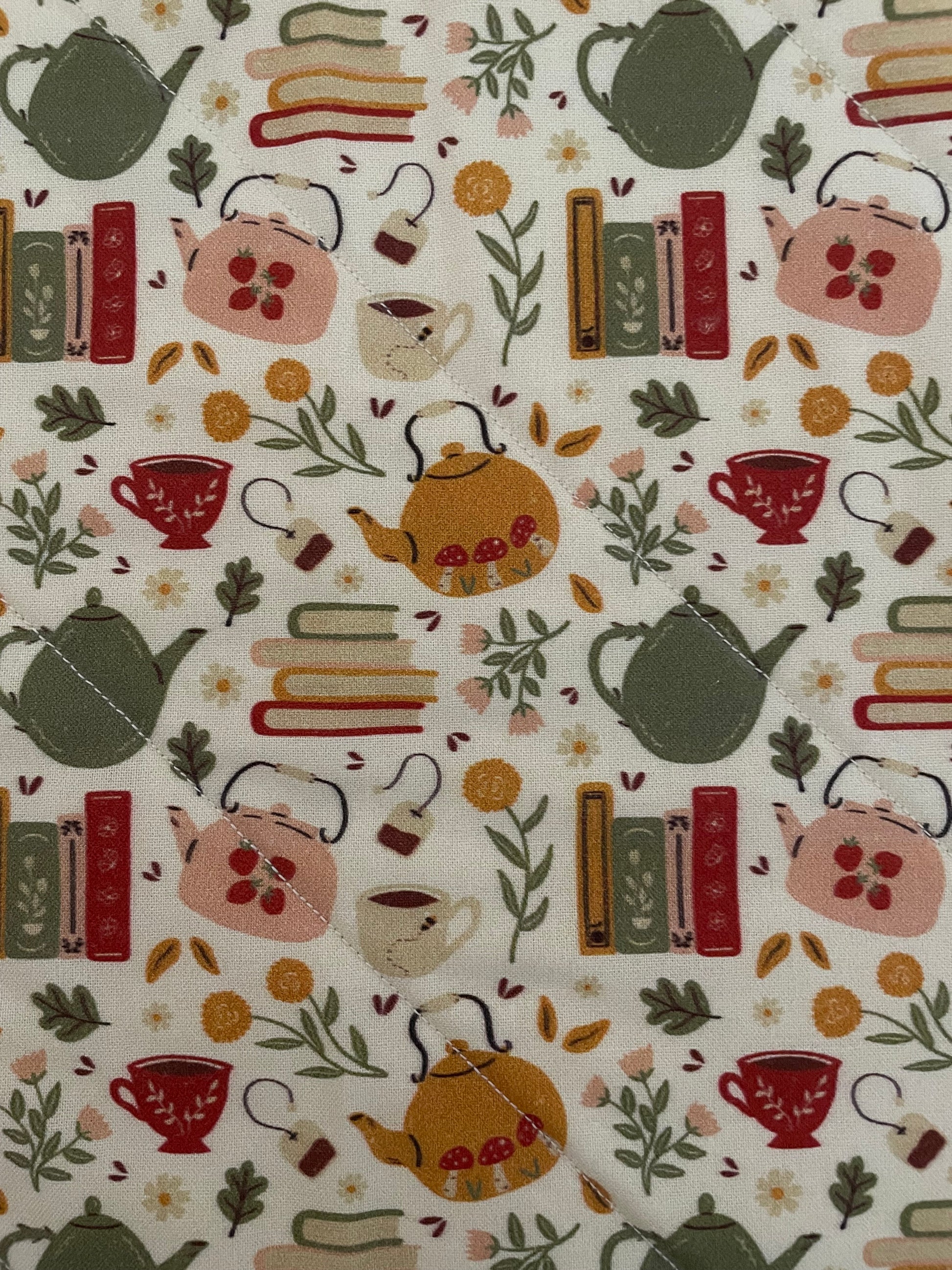 Our Mini Booksleeves measure approximately 6”x8” and are made with our super soft cotton batting. The interior lining is cream and the exterior is quilted, just like our full size sleeves.